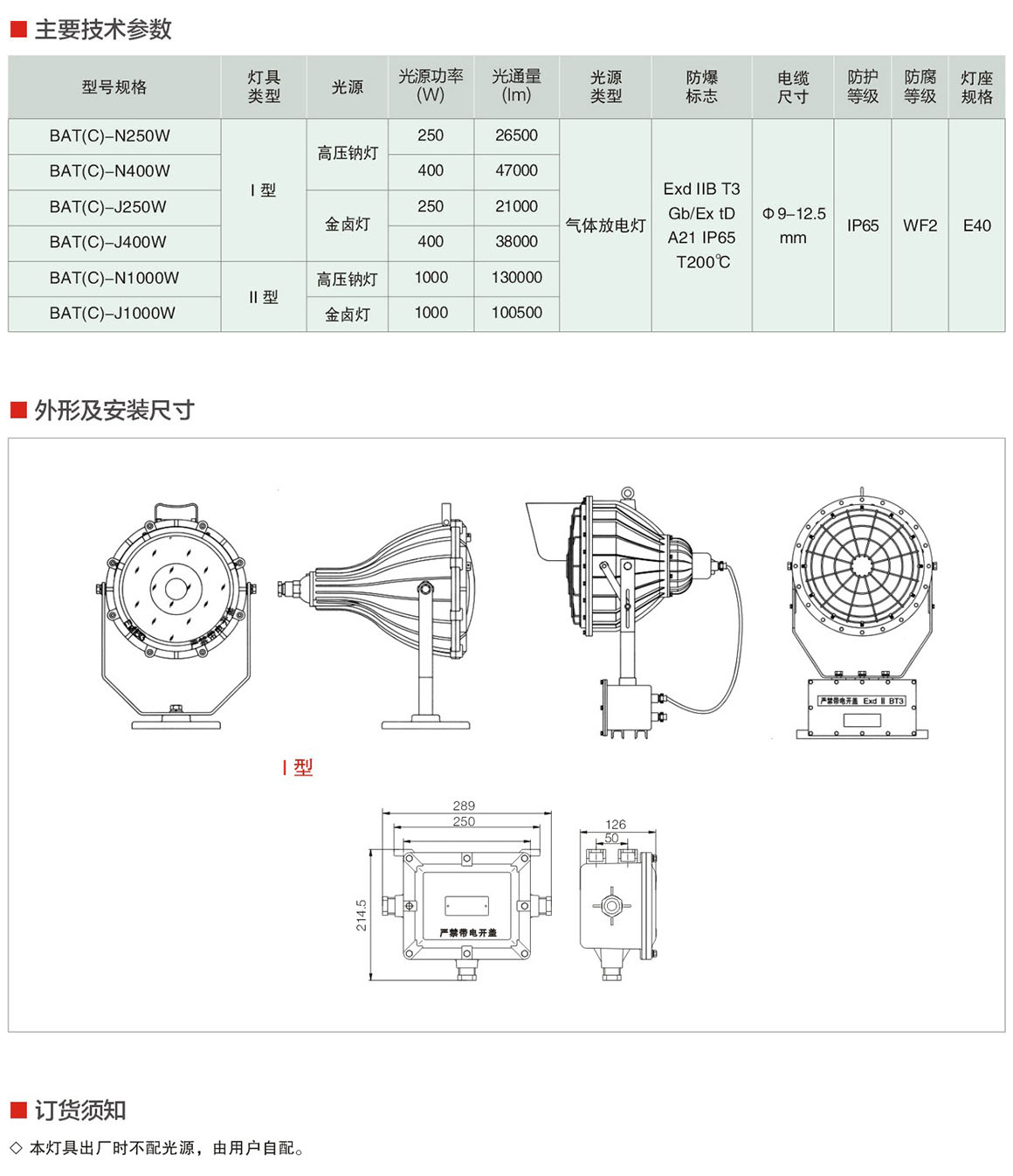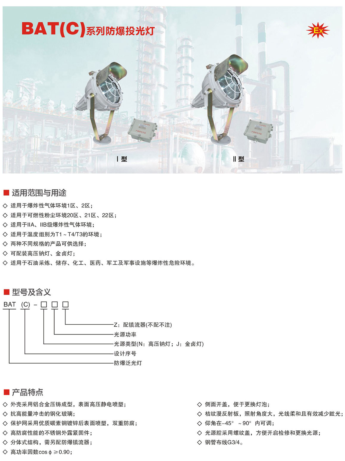 产品中心 厂用防爆灯具系列 BAT(C)系列防爆投光灯(ⅡB)
