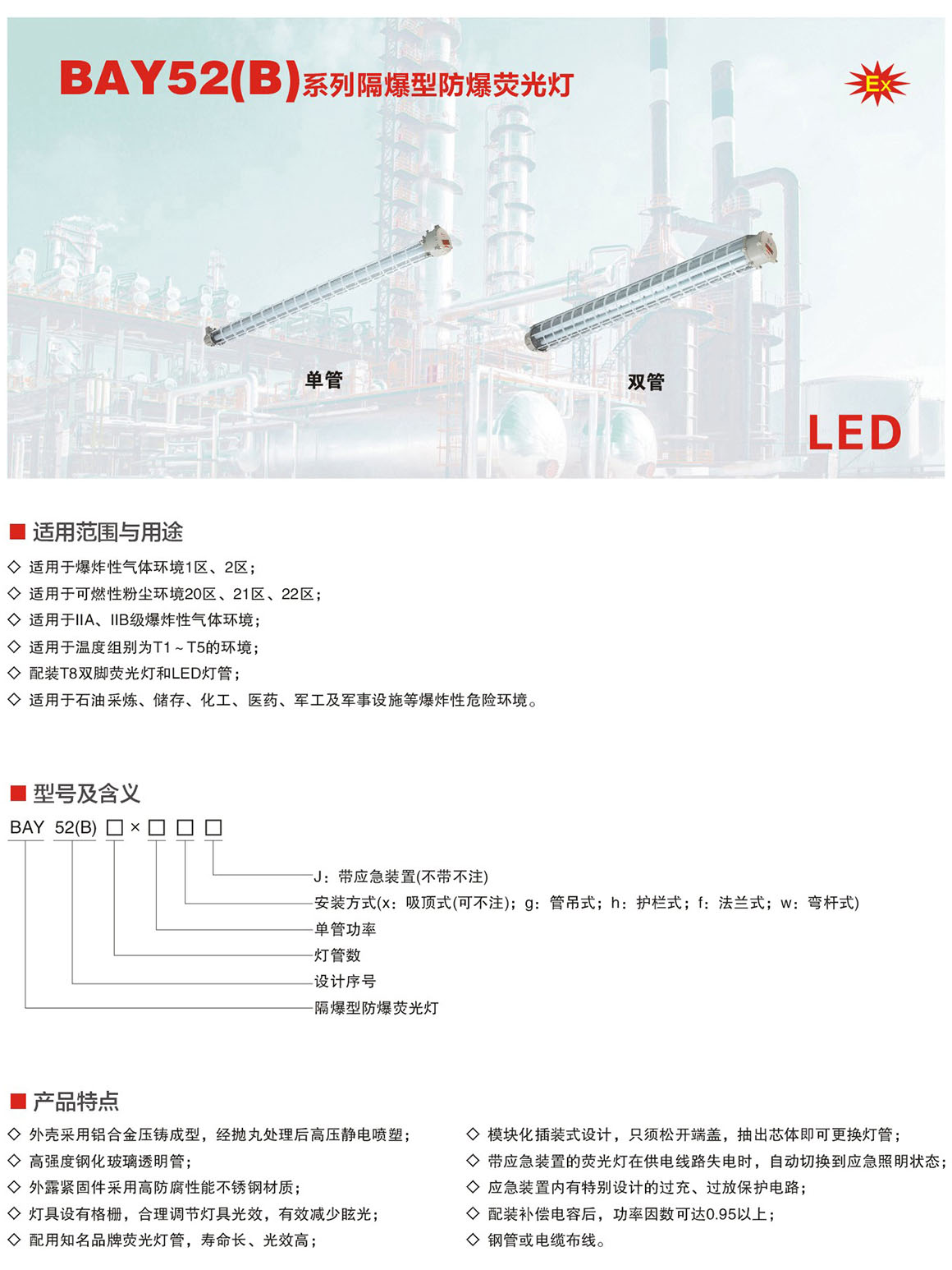 产品中心 厂用防爆灯具系列 BAY52(B)系列隔爆型防爆焚光灯(ⅡB)