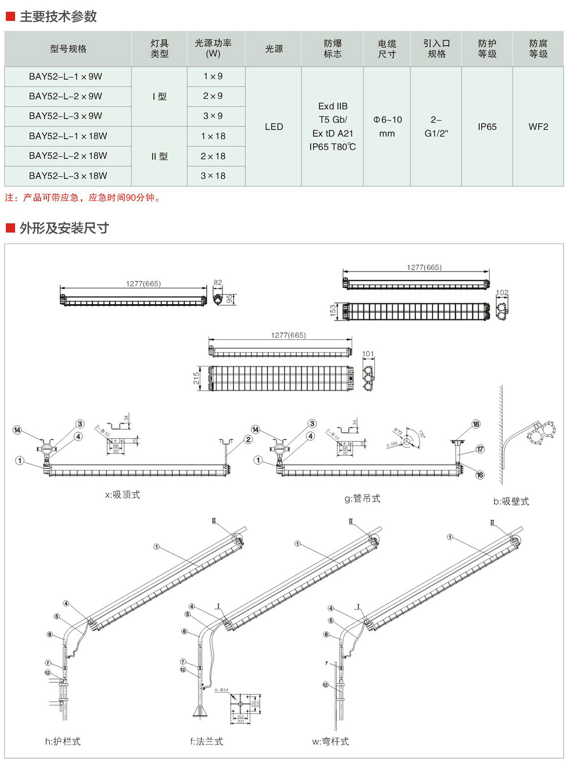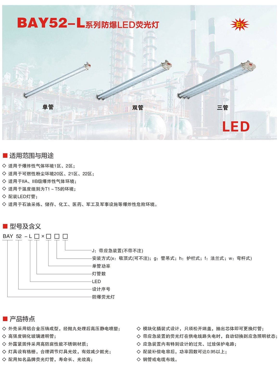 产品中心 厂用防爆灯具系列 BAY52-L系列防爆LED荧光灯(ⅡB)