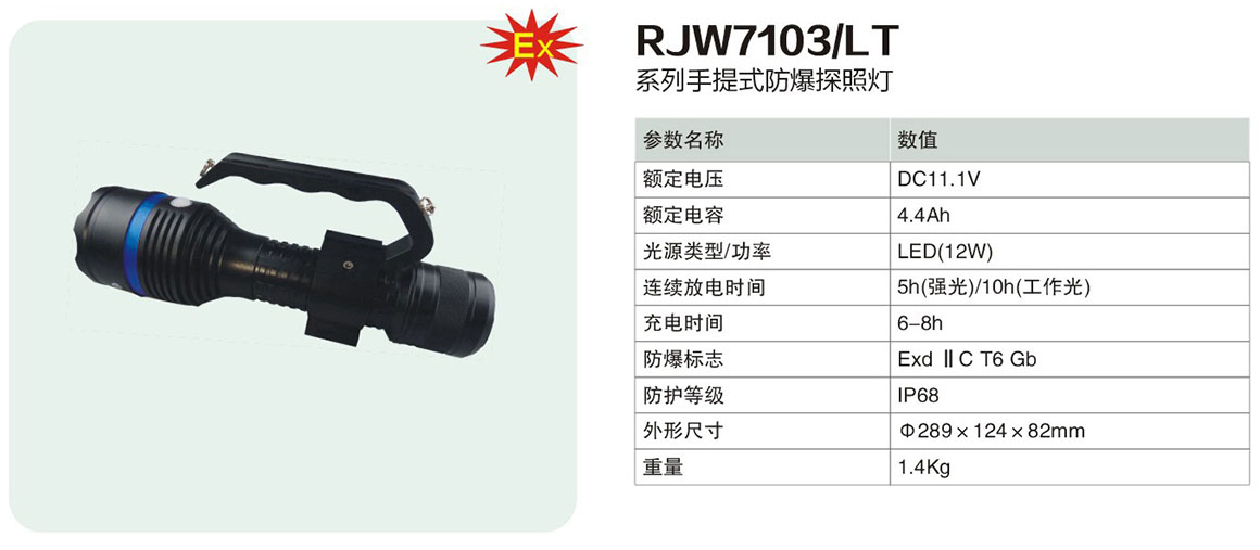 产品中心 移动防爆照明系列 RJW7103/LT系列手提式防爆探照灯(ⅡC)