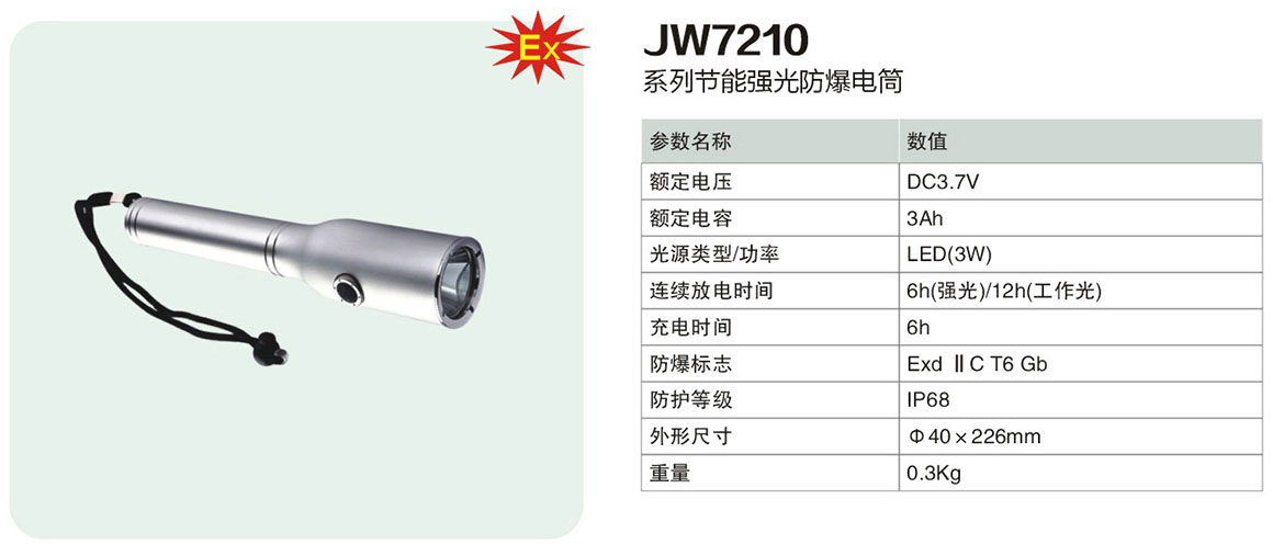 产品中心 移动防爆照明系列 JW7210系列节能强光防爆电筒(ⅡC)