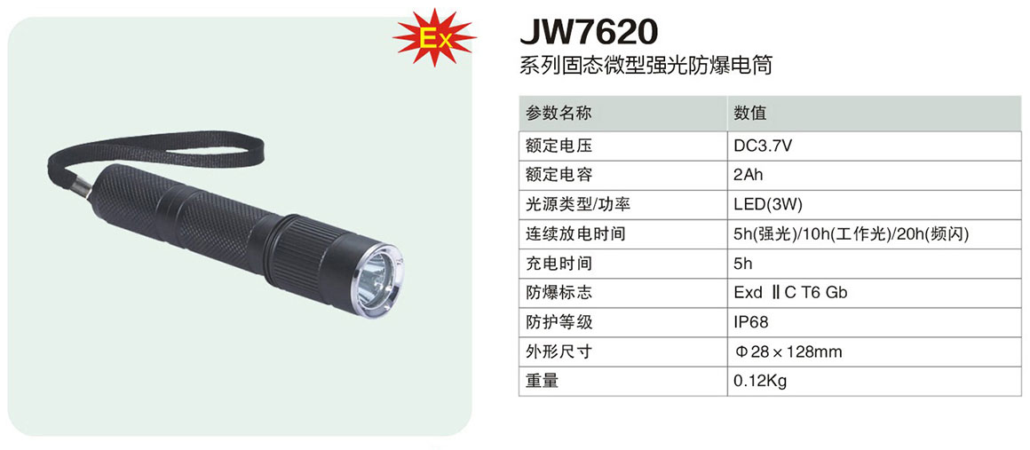产品中心 移动防爆照明系列 JW7602系列固态微型强光防爆电筒(ⅡC)