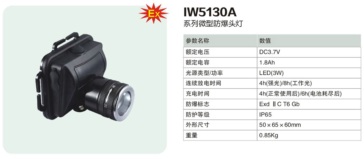 产品中心 移动防爆照明系列 IW5130A系列微型防爆头灯(ⅡC)