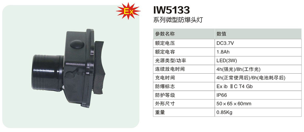 产品中心 移动防爆照明系列 IW5133系列微型防爆头灯(ⅡC)