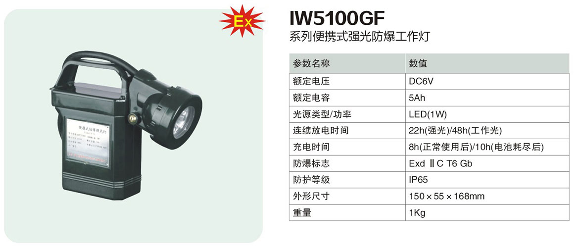 产品中心 移动防爆照明系列 IW5100GF系列便携式强光防爆工作灯(ⅡC)