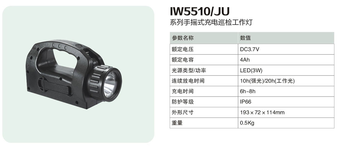 产品中心 移动防爆照明系列 IW5510/JU系列手摇式充电巡检工作灯