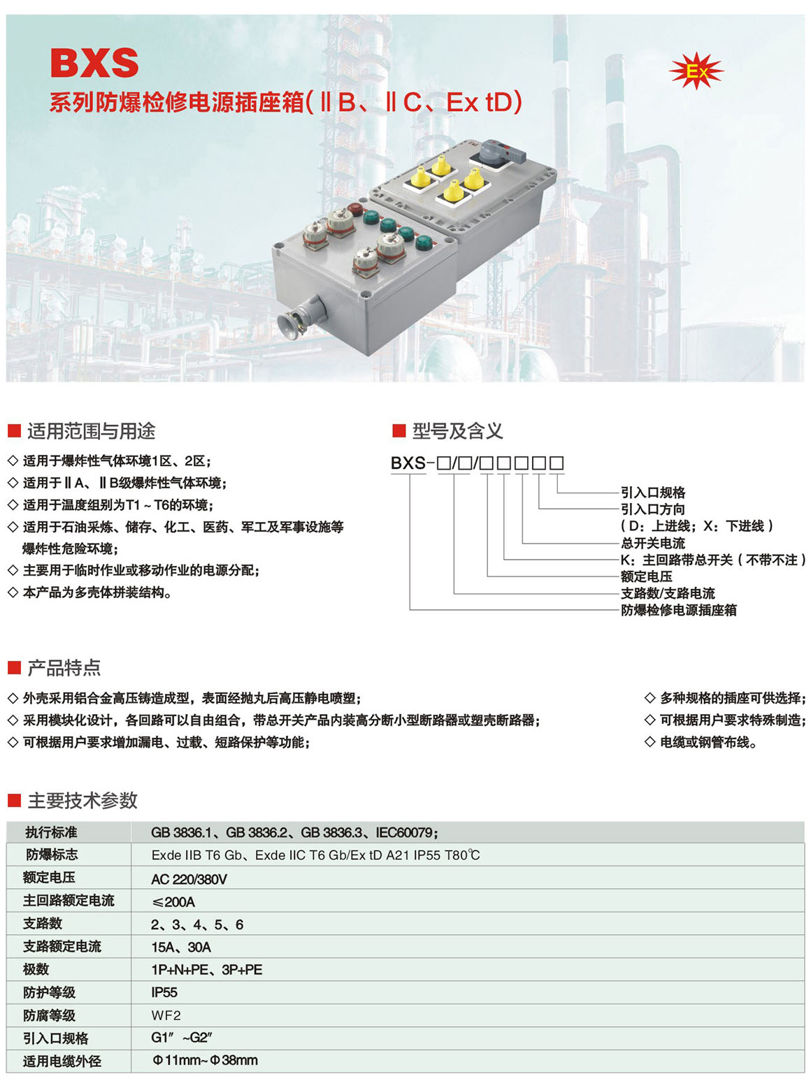 产品中心 防爆电器系列 BXS系列防爆检修电源插座箱(ⅡB、ⅡC、Ex tD)