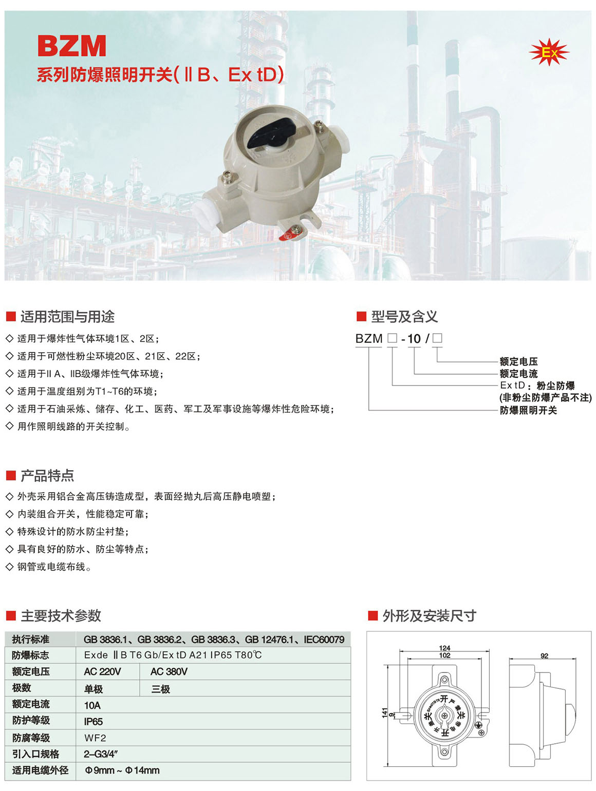 产品中心 防爆电器系列 BZM系列防爆照明开关(ⅡB、Ex tD)