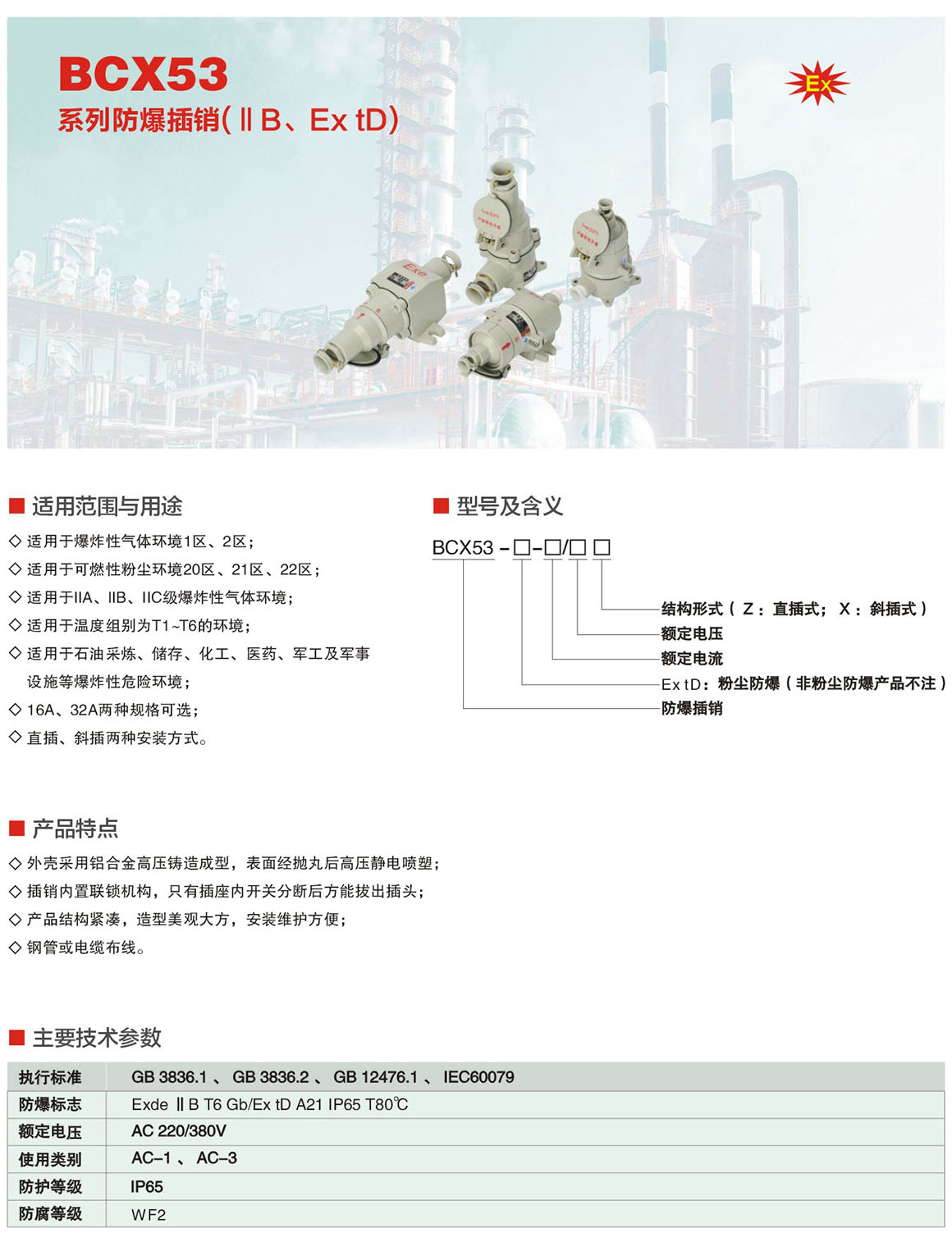 产品中心 防爆电器系列 BCX53系列防爆插销(ⅡB、Ex tD)