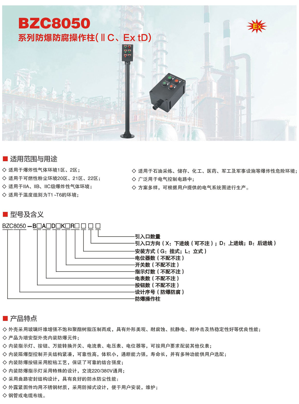 产品中心 防爆防腐电器系列 BZC8050系列防爆防腐操作柱(ⅡC、Ex tD)