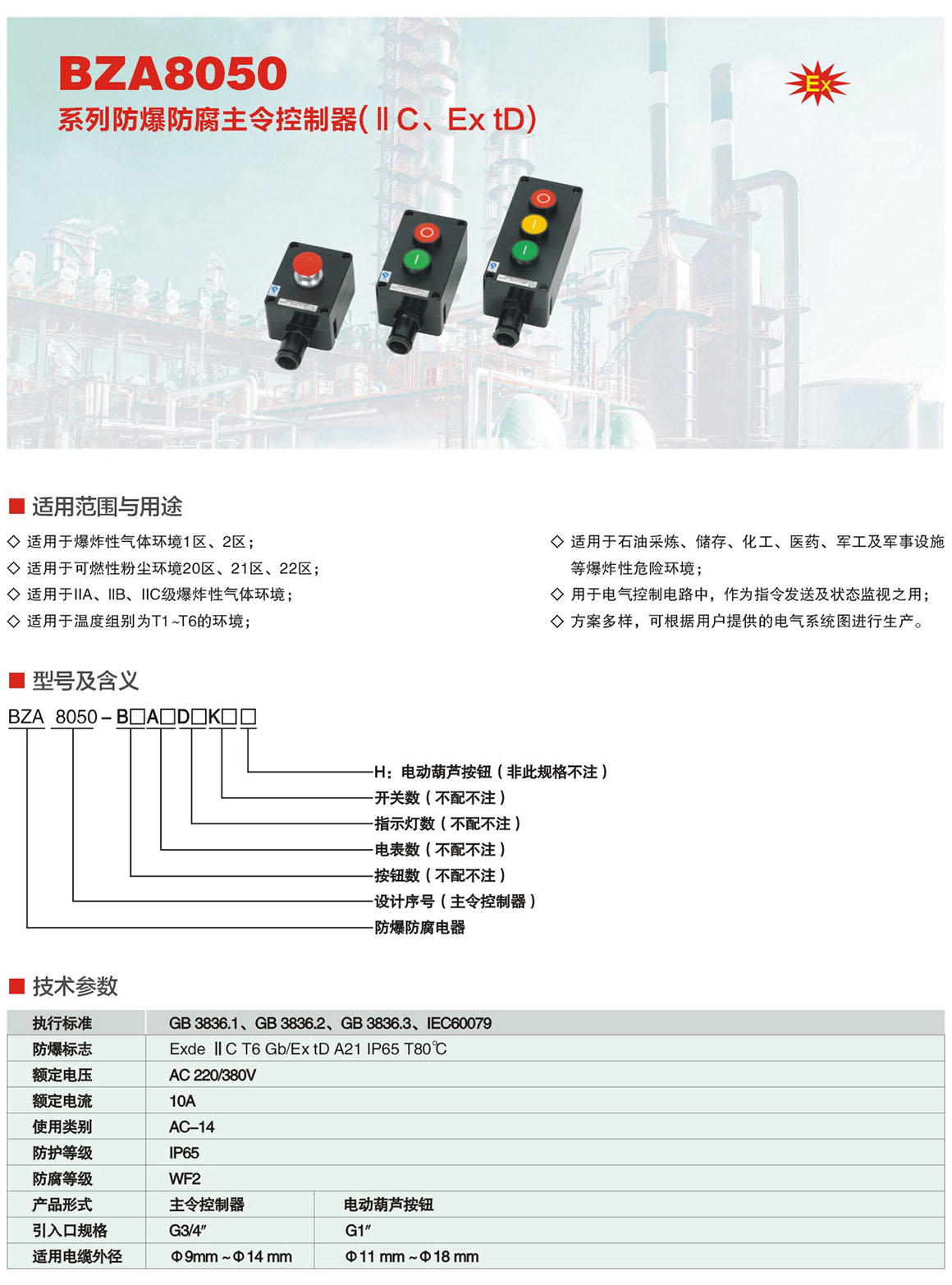 产品中心 防爆防腐电器系列 BZA8050系列防爆防腐主令控制器(ⅡC、Ex tD)