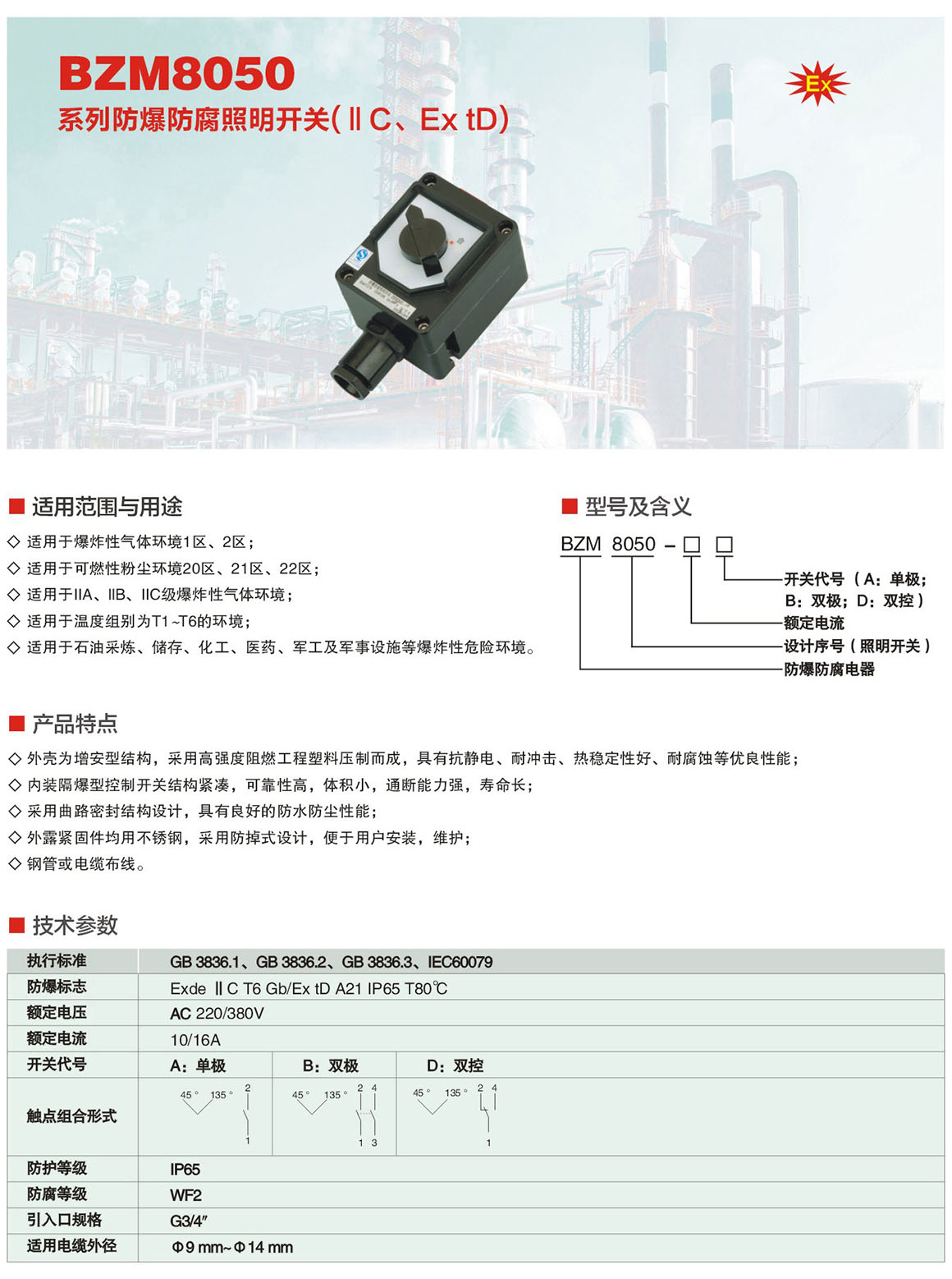 产品中心 防爆防腐电器系列 BZM8050系列防爆防腐照明开关(ⅡC、Ex tD)