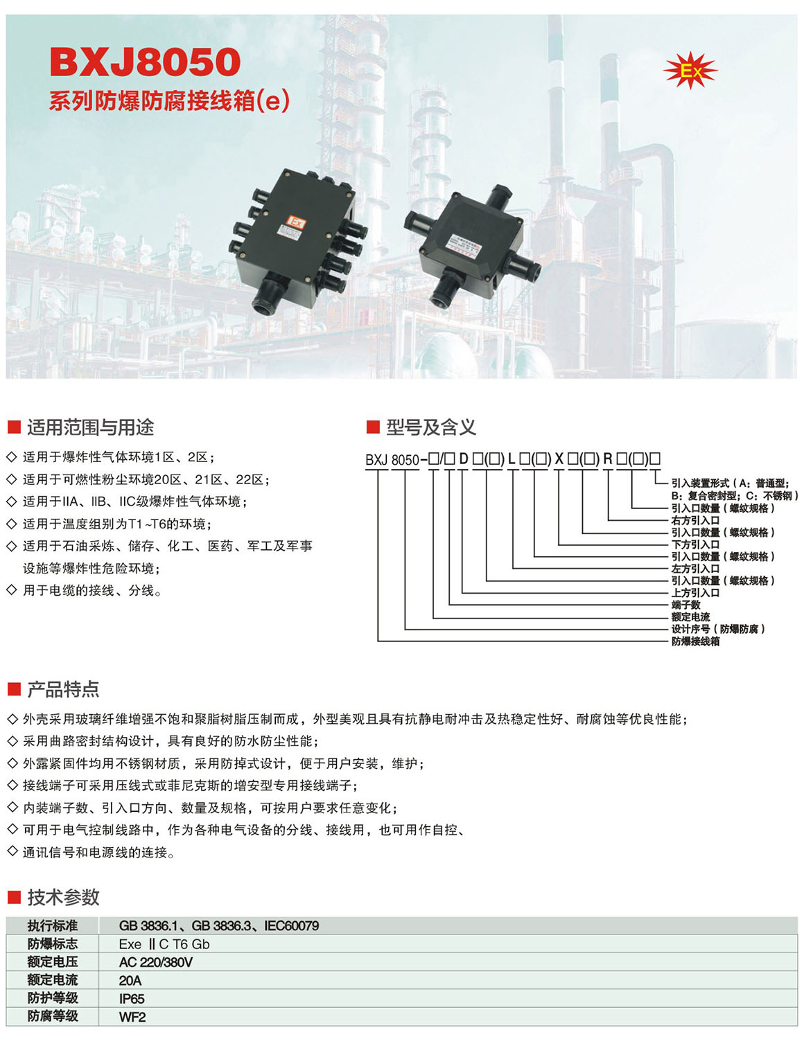 产品中心 防爆防腐电器系列 BXJ8050系列防爆防腐接线箱(e)