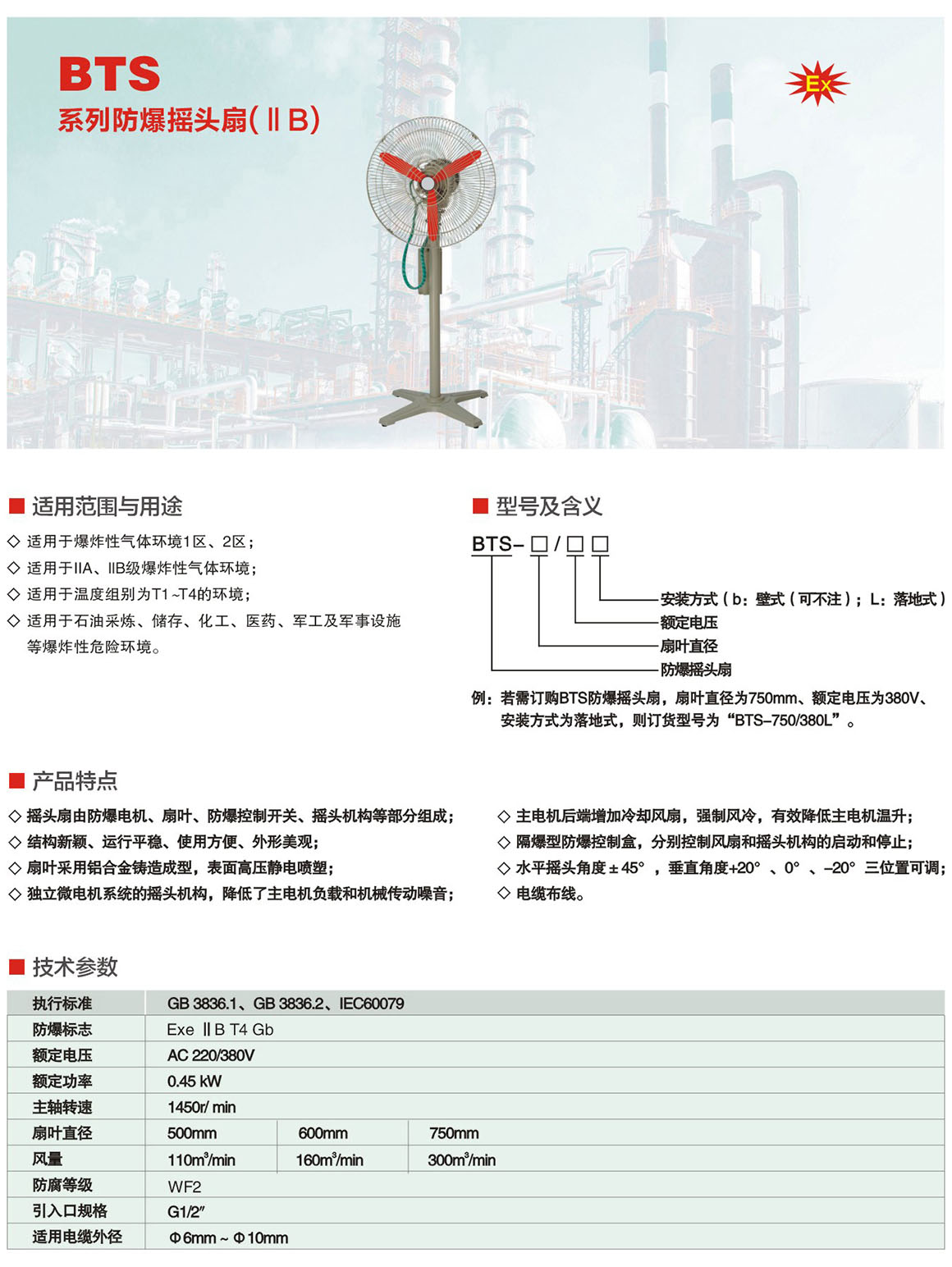 产品中心 防爆风机、管件系列 BTS系列防爆摇头扇(ⅡB)