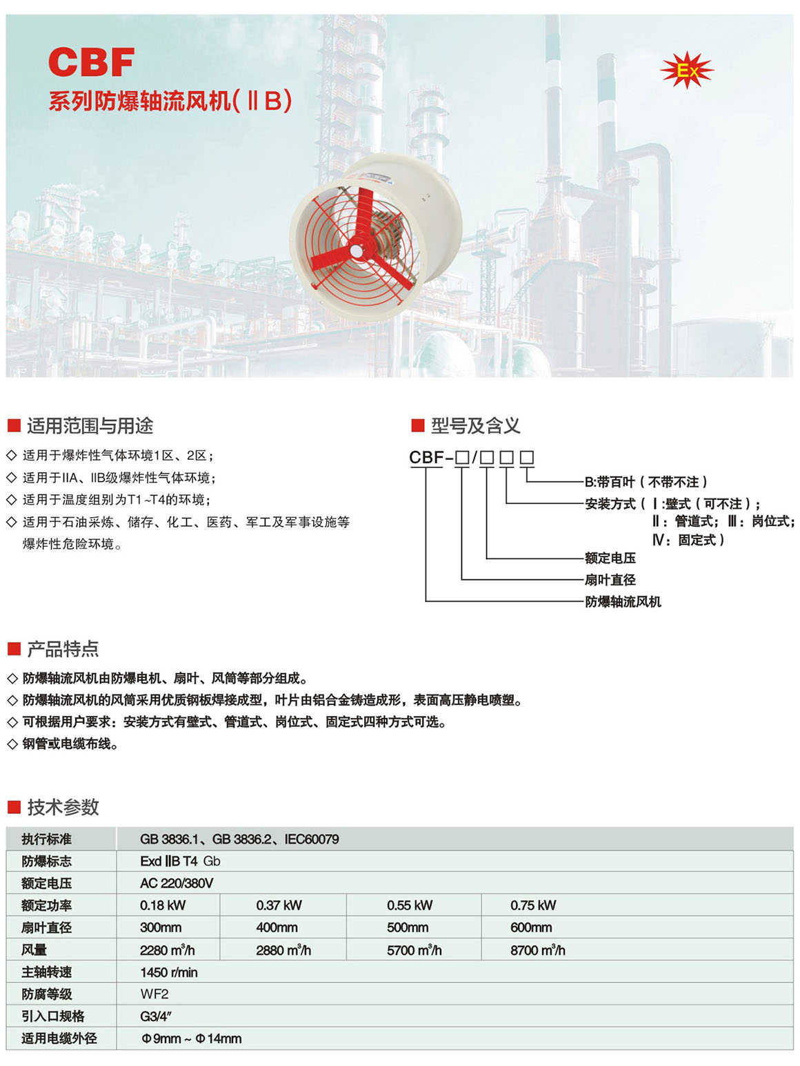 产品中心 防爆风机、管件系列 CBF系列防爆轴流风机(ⅡB)