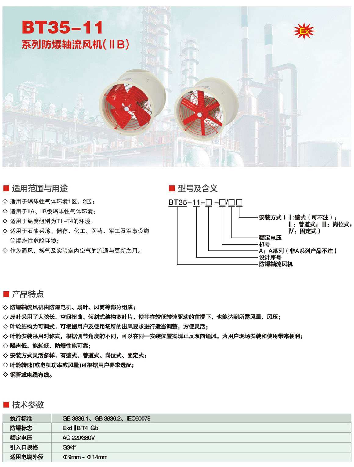 产品中心 防爆风机、管件系列 BT35-11系列防爆轴流风机(ⅡB)