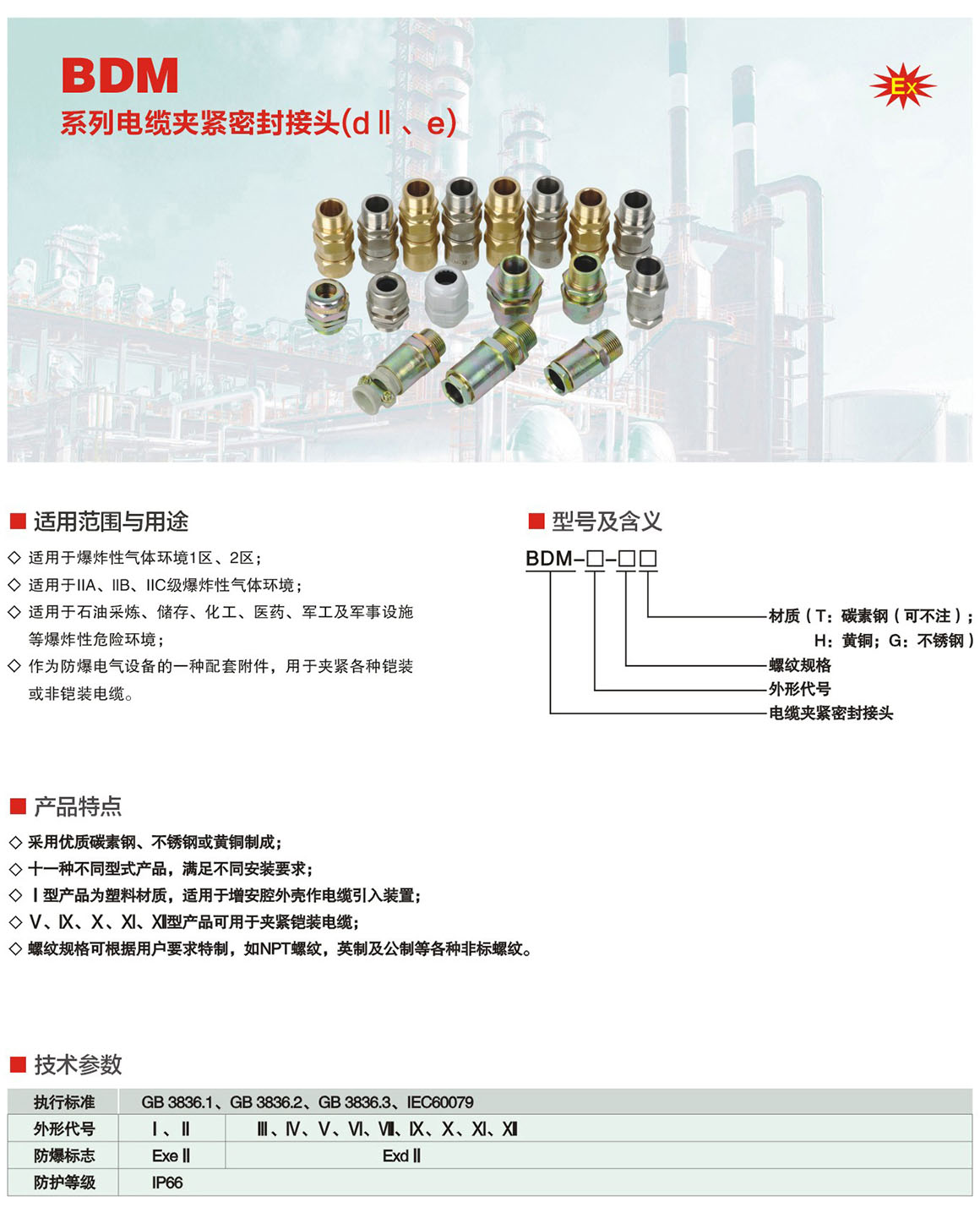 产品中心 防爆风机、管件系列 BDM系列电缆夹紧密封接头(dⅡ、e)