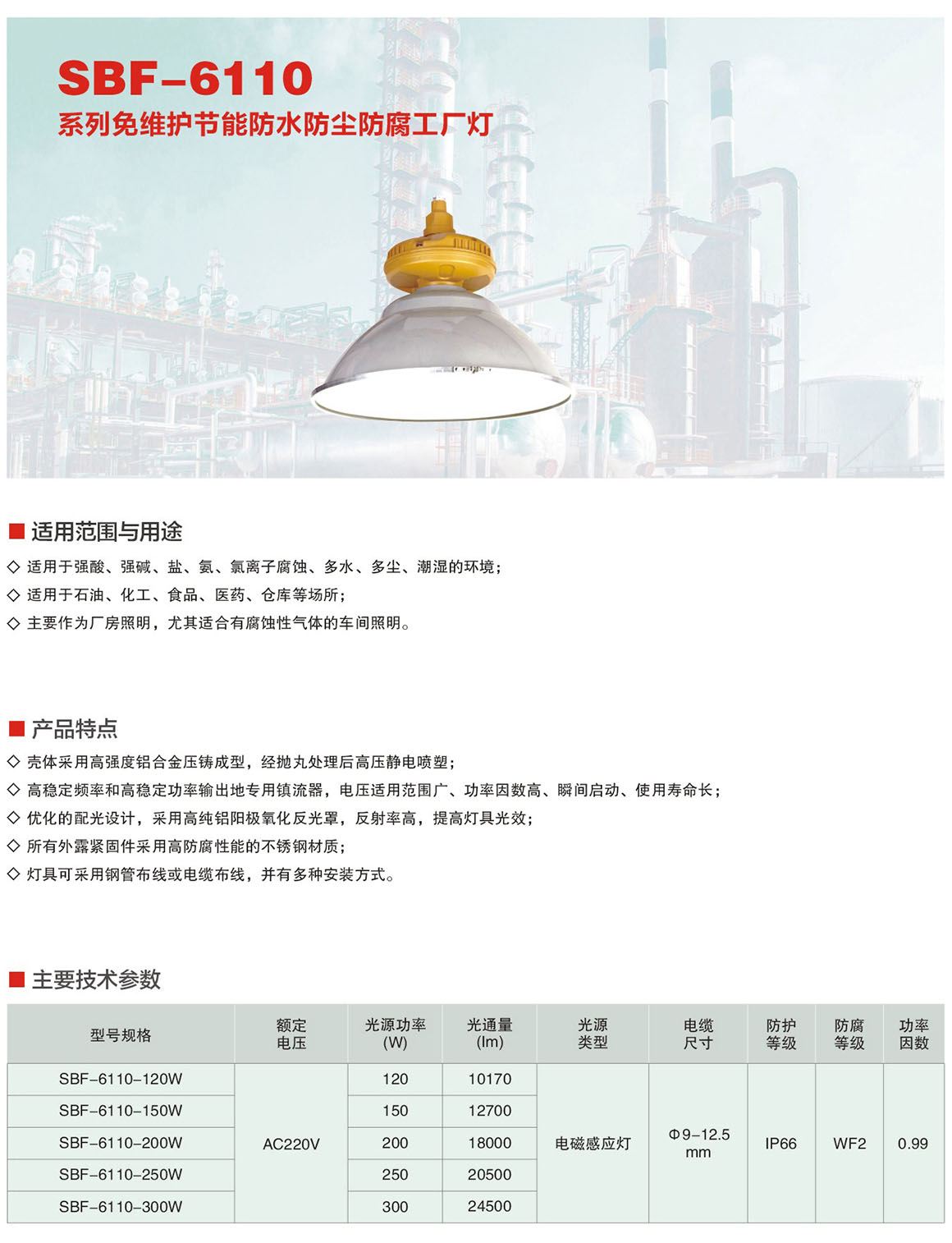 产品中心 免维护节能防爆(三防)灯具系列 SBF-6110系列免维护节能防水防尘防腐工厂灯