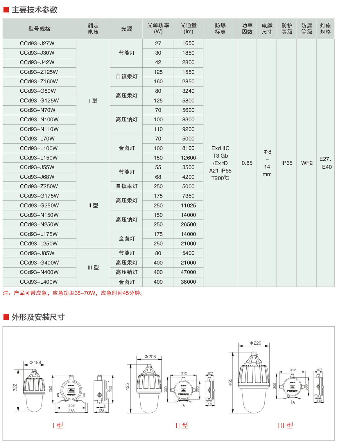 产品中心 厂用防爆灯具系列 CCd93系列防爆照明灯(ⅡC)