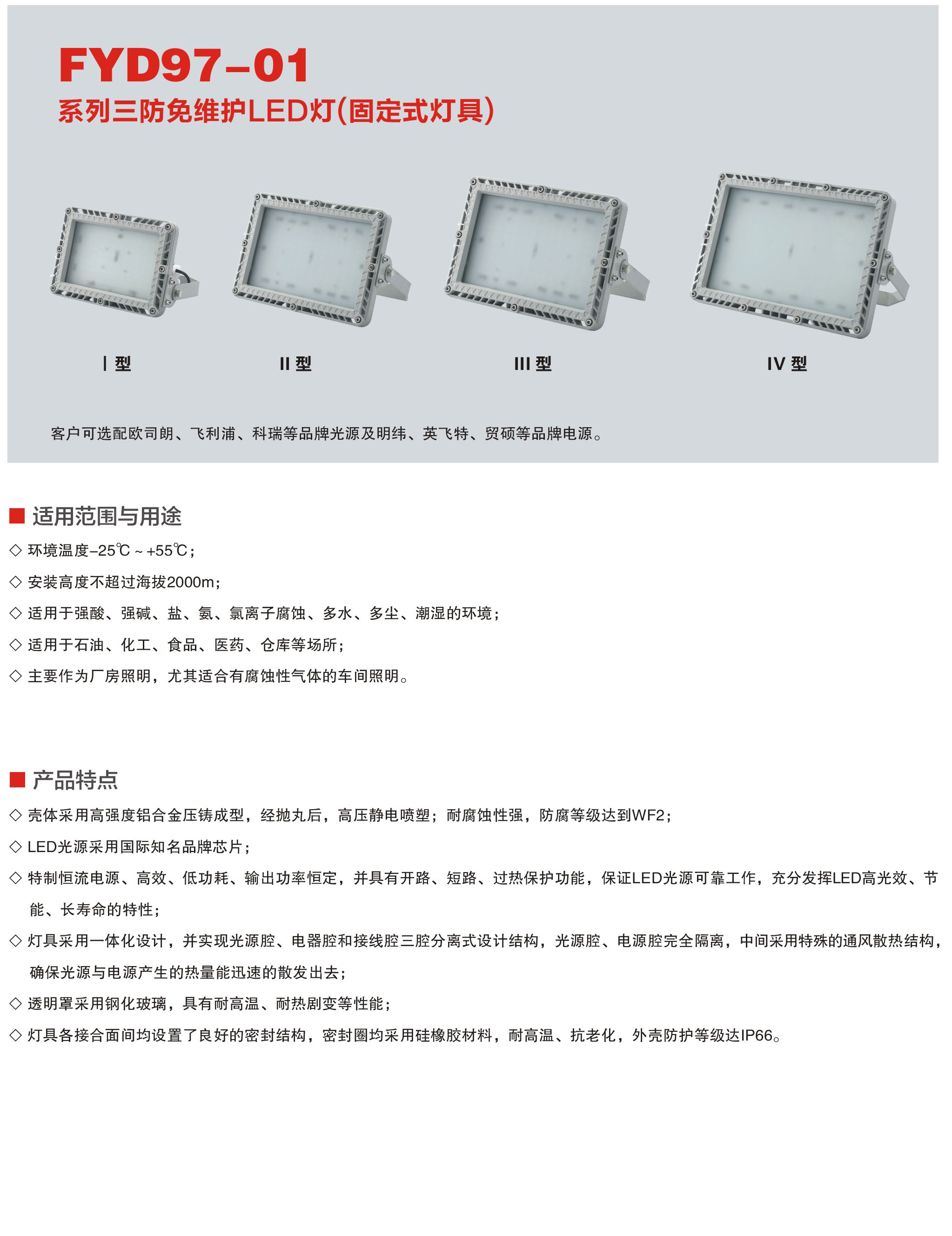 产品中心 免维护LED防爆三防固定式 免维护LED防爆三防固定式-FYD97-01新黎明