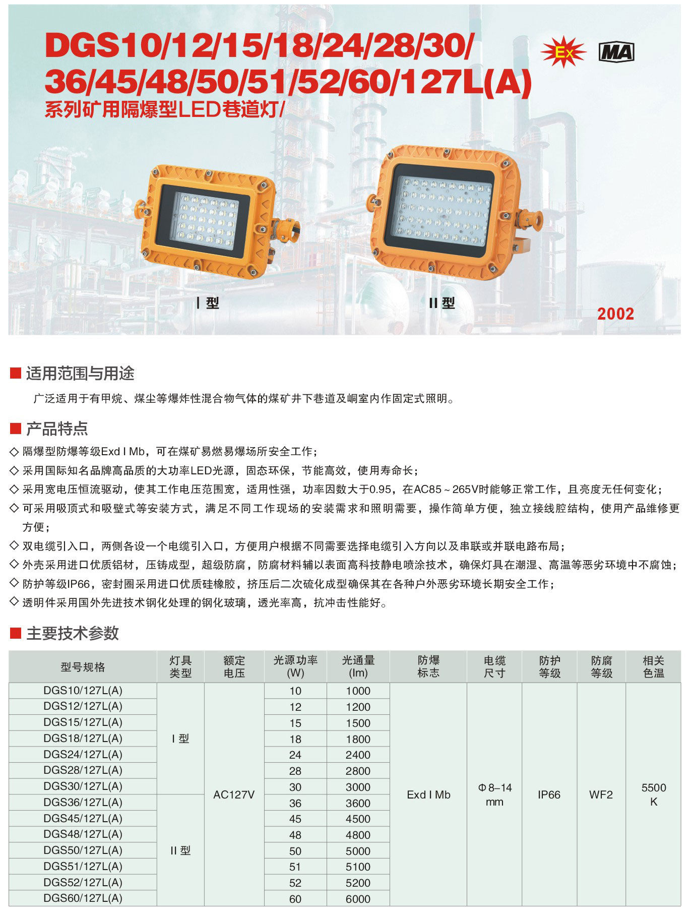 产品中心 矿用隔爆LED巷道灯 矿用隔爆LED巷道灯-DGS24/36/48/127L(A) 2002 新黎明
