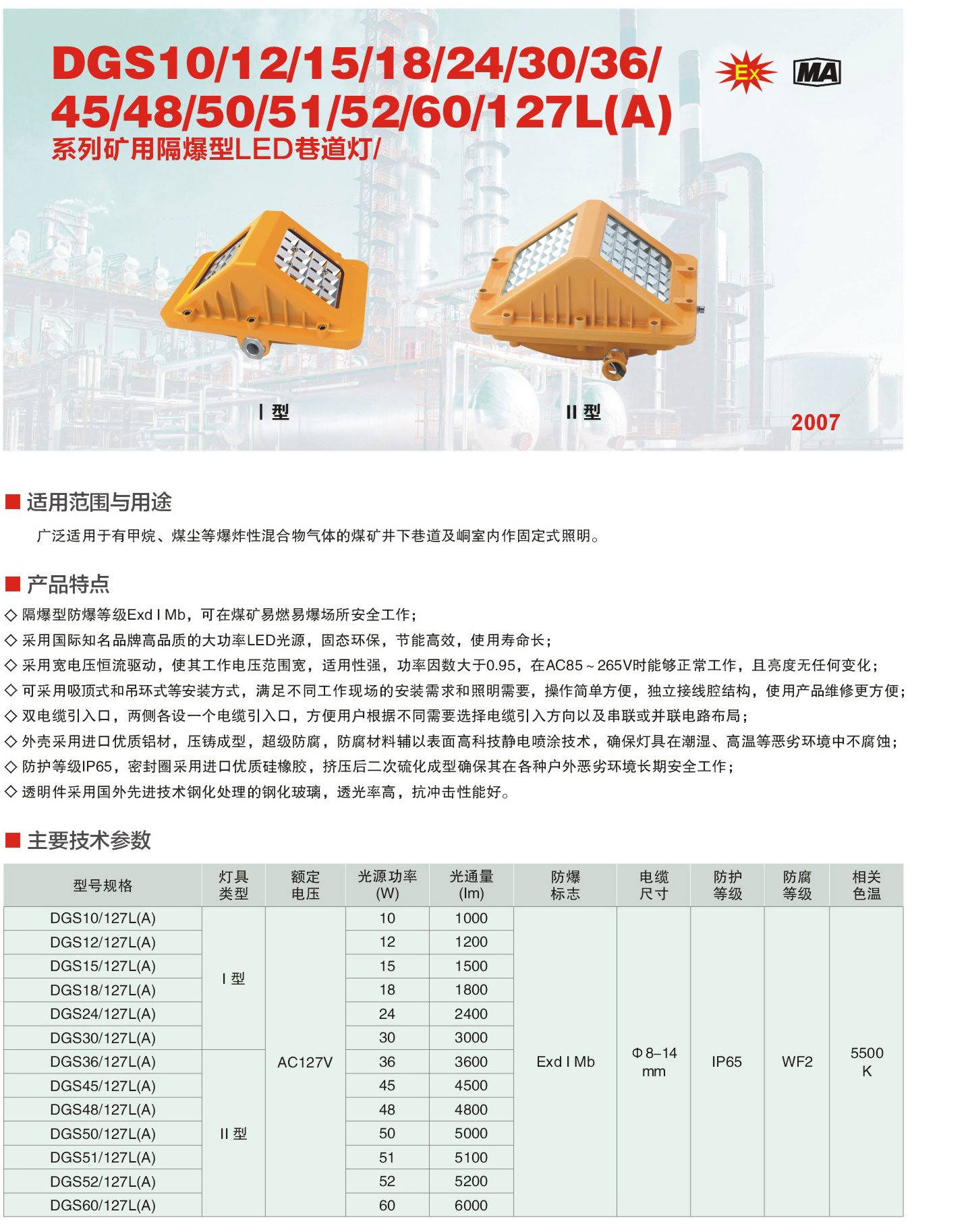 产品中心 矿用隔爆LED巷道灯 矿用隔爆LED巷道灯-DGS36/45/48/50/127L(A)2007新黎明
