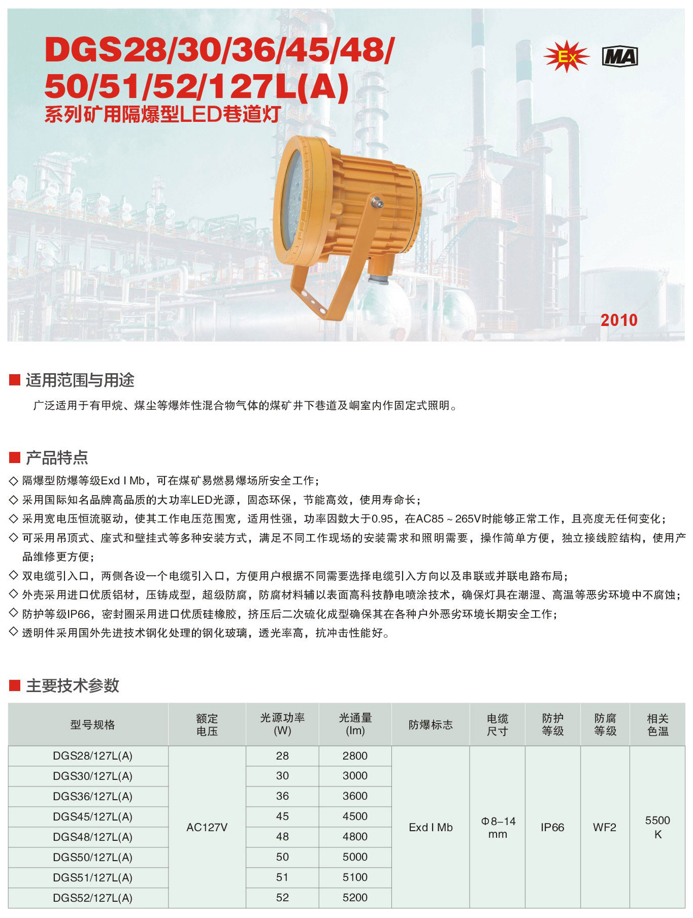 产品中心 矿用隔爆LED巷道灯 矿用隔爆LED巷道灯-DGS30/45/60/127L(A)2010新黎明