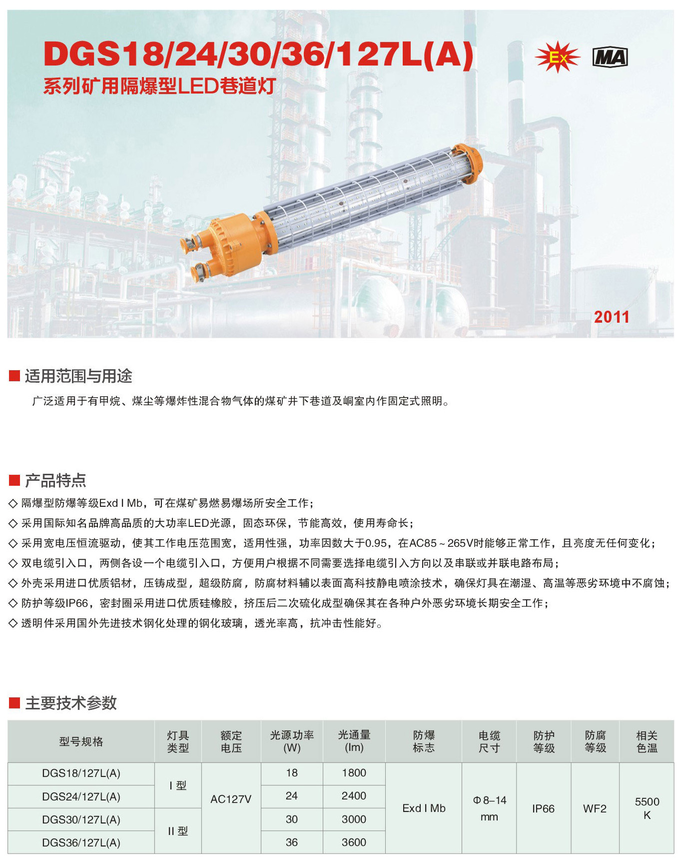 产品中心 矿用隔爆LED巷道灯 矿用隔爆LED巷道灯-DGS30/36/127L(A)2011新黎明
