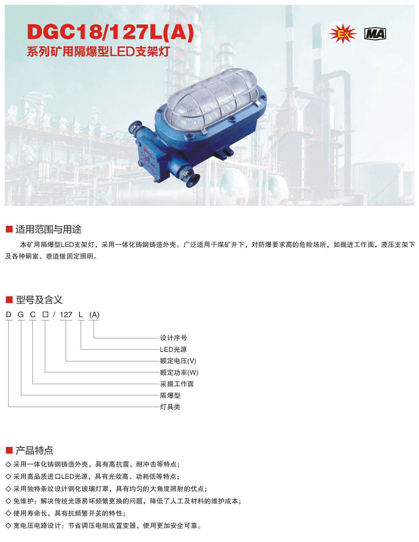 产品中心 矿用隔爆LED巷道灯 矿用隔爆LED支架灯-DGC18/127L(A)新黎明