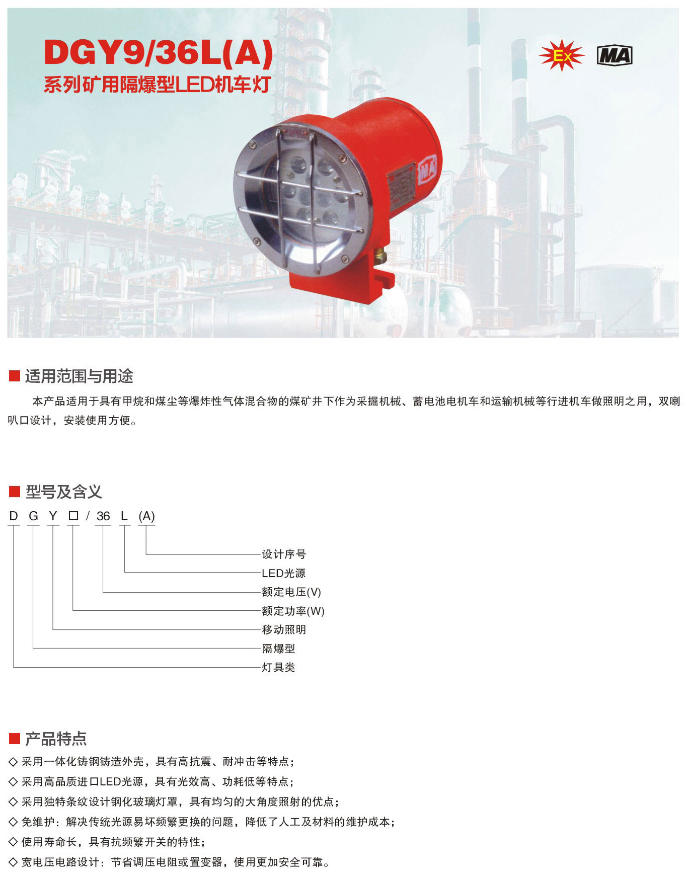 产品中心 矿用隔爆LED巷道灯 矿用隔爆LED机车灯-DGY9/36L(A)新黎明