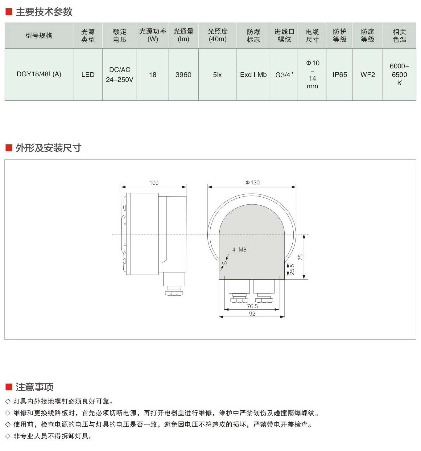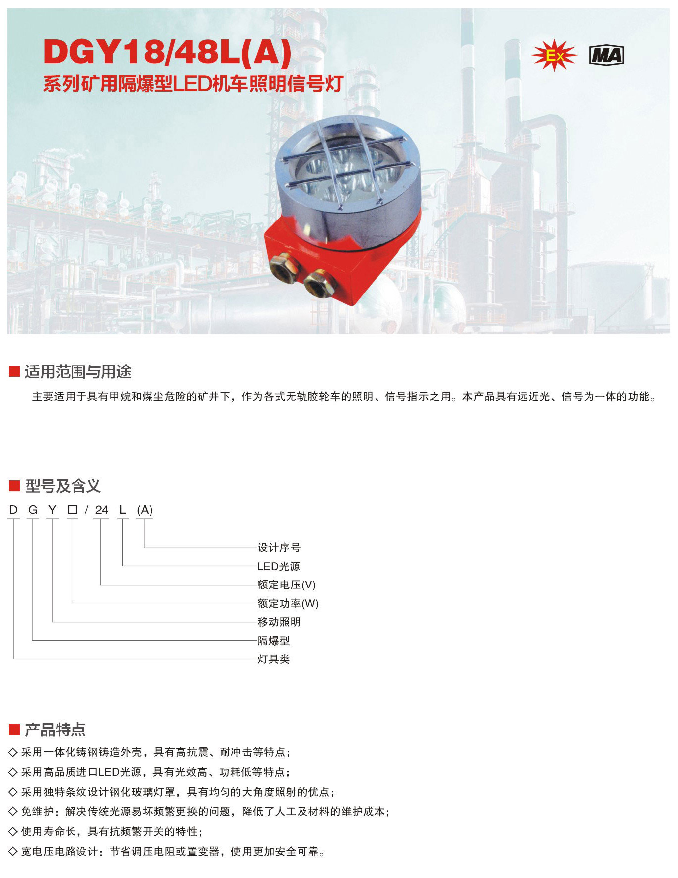 产品中心 矿用隔爆LED巷道灯 矿用隔爆LED机车照明信号灯-DGY18/48L(A)新黎明